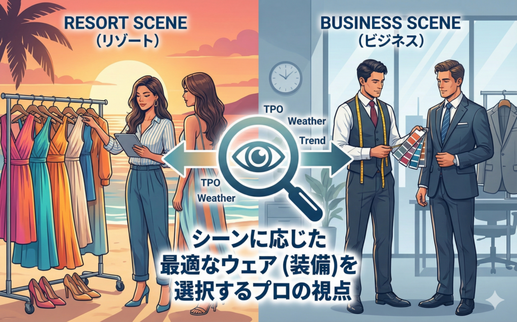 私たちダイビングの専門家は、海に入る際のウェットスーツを単なる服ではなく、環境に適応するための「装備(ギア)」と呼びます。水温、水深、活動内容に合わせて最適な装備を選ばなければ、パフォーマンスが発揮できないばかりか、危険さえ伴うからです。この考え方は、陸上におけるビジネスや冠婚葬祭などの社会的な活動においても全く同じことが言えます。その場の環境(TPO)に合わせて、自分を保護し、機能を拡張し、信頼を得るための「装備」としての衣服。ここでは、プロの視点から見た戦略的なウェアの選択と、レンタルによる最適化について解説します。