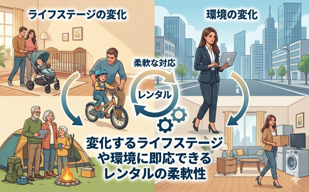 変化するライフステージや環境に即応できるレンタルの柔軟性